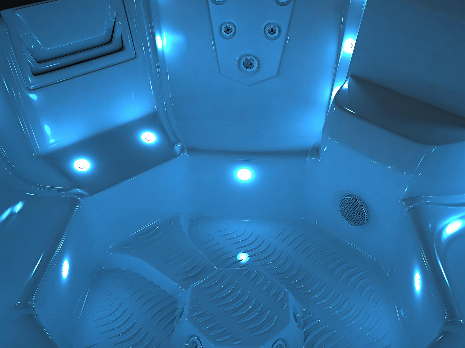 Modern Collection and Modern Collection spas feature our highest count of lights for a stylish soak. The interior lighting system features multiple points of light placed to accent the contours of the spa shell. Two exterior LED light bars integrate with the front corners of the spa, creating a uniquely elegant look that is unlike any other. Match the color to your mood by selecting the hue and brightness of your choice or cycle through all six vibrant choices.