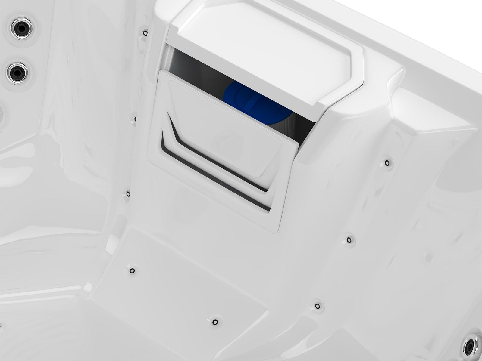 Our unique two-filter design provides for more effective, constant filtration. One filter is dedicated to the circulation pump. The other is dedicated to the jet pumps to clean water when the jets are running. Working together, these two filters provide more total effective filtration area to keep water cleaner with less maintenance.