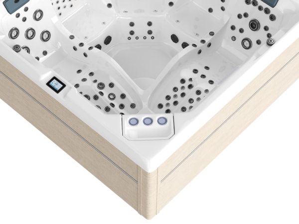 Clear water is essential for a great spa experience. The spa has an online disinfection system ready. Pre-filled cartridges automatically release disinfectants and minerals to keep the water soft, clean and clear with less effort.