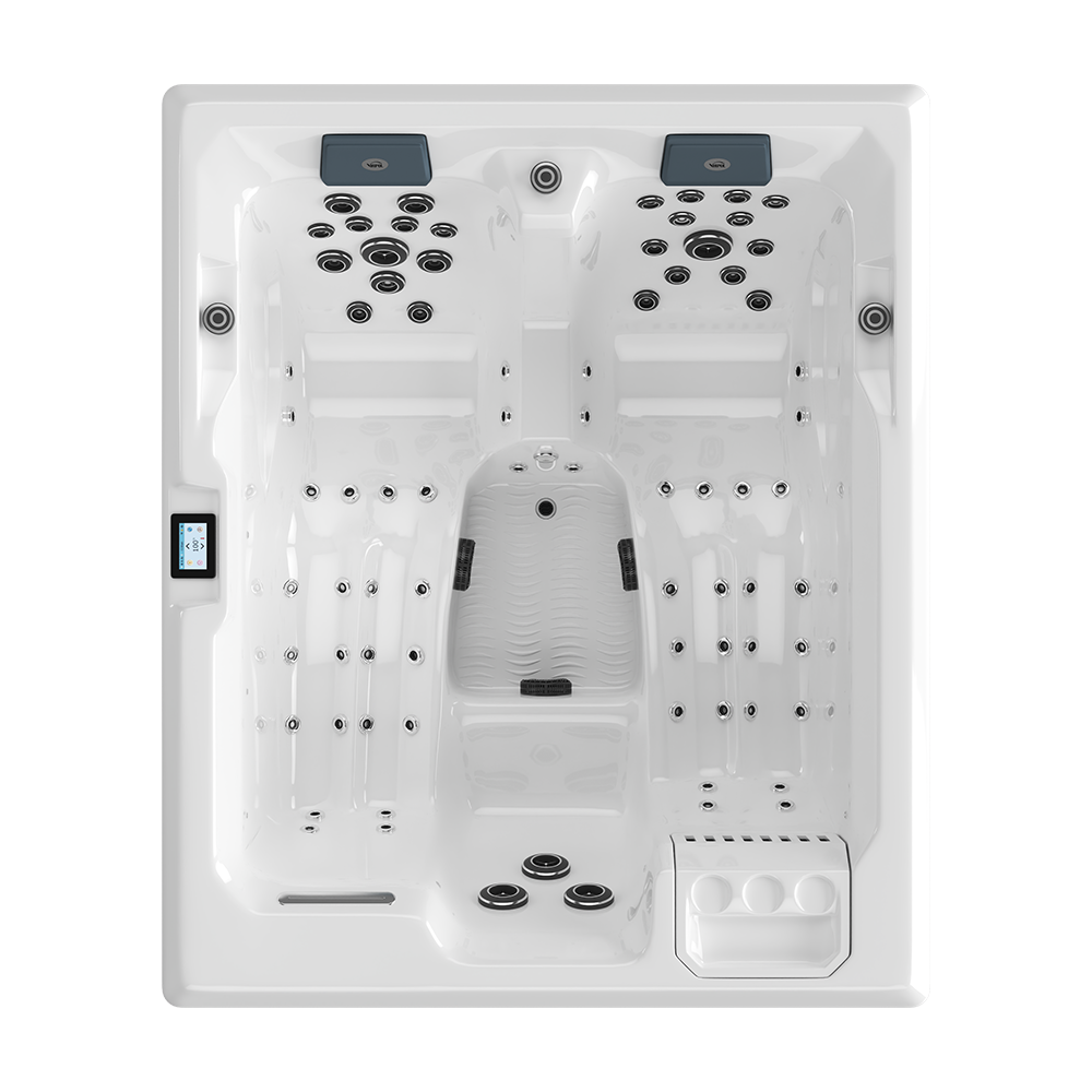 Two moving streams of water sweep up and down the length of your back for an unparalleled massage experience.
